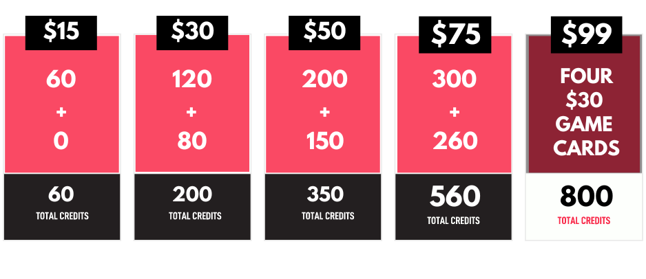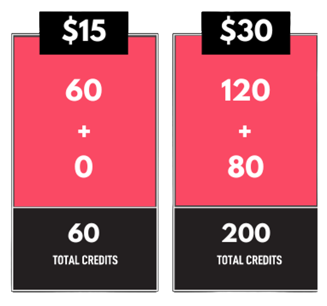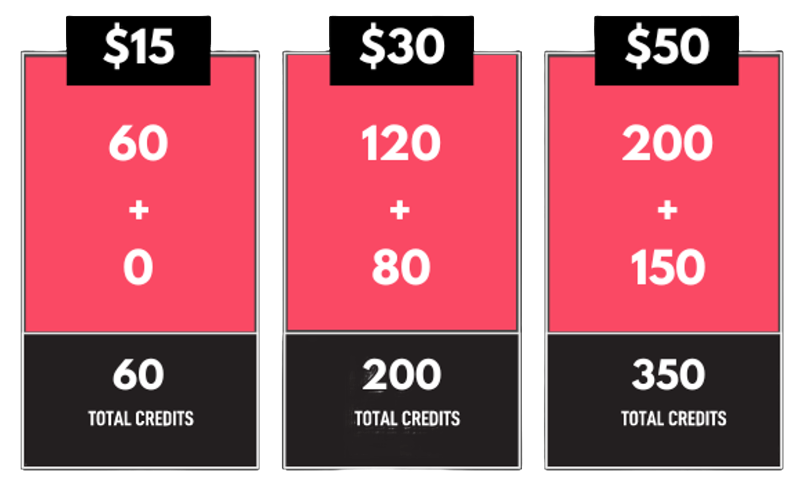 *$2 fee is charged for new card activation (cards come pre-loaded with $2 in credits). All prices subject to HST.